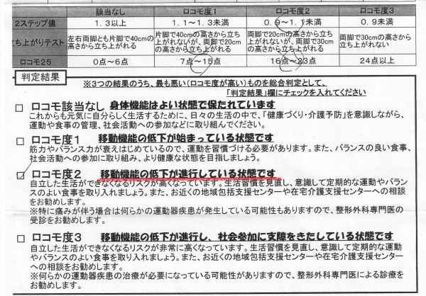 ロコモ度 移動機能の低下が進行している状態です。